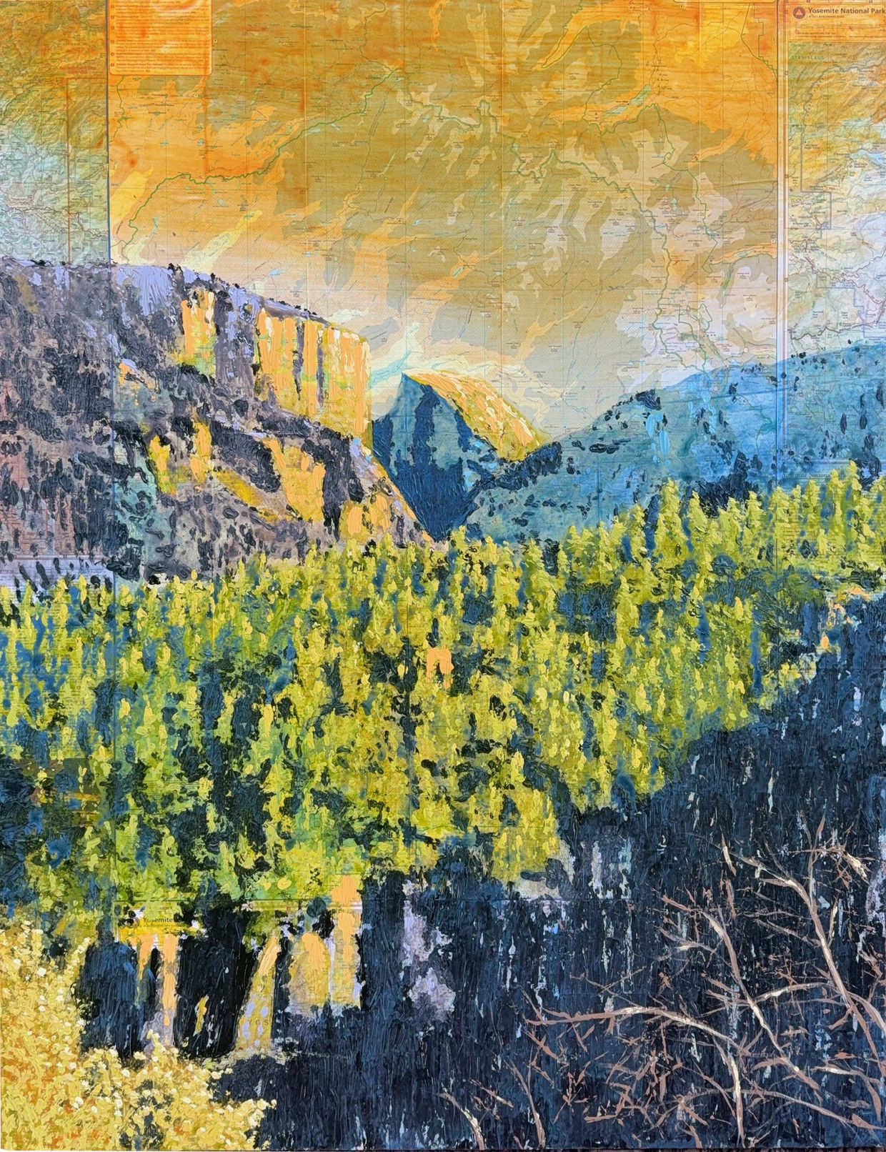 Painted on a map of Yosemite using a pebble of granite from Yosemite as a paintbrush.
