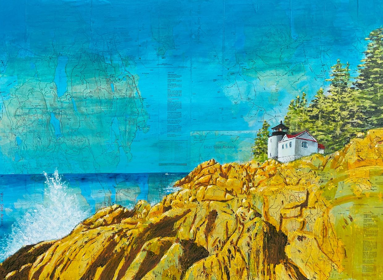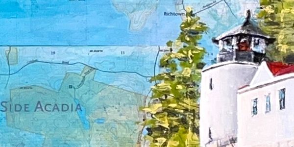 Painted on a map of Acadia using a lichen covered twig as a paintbrush.