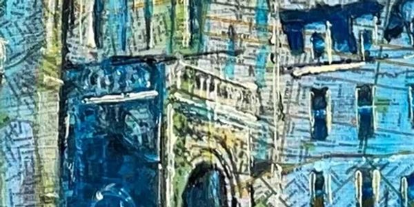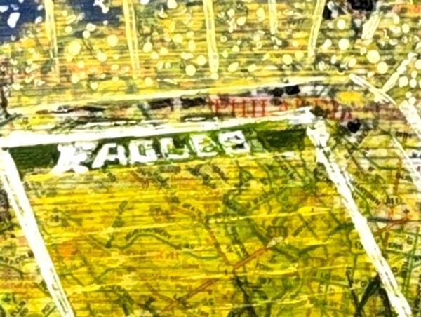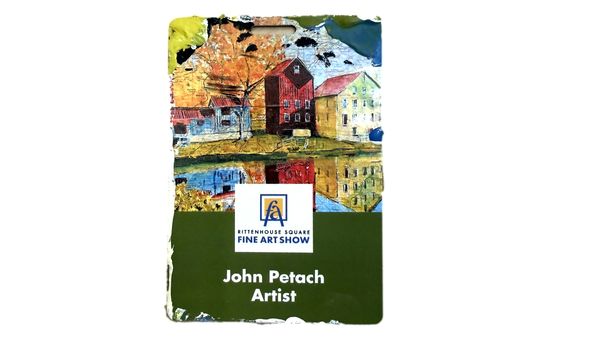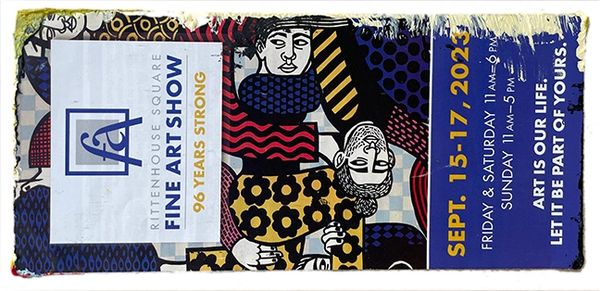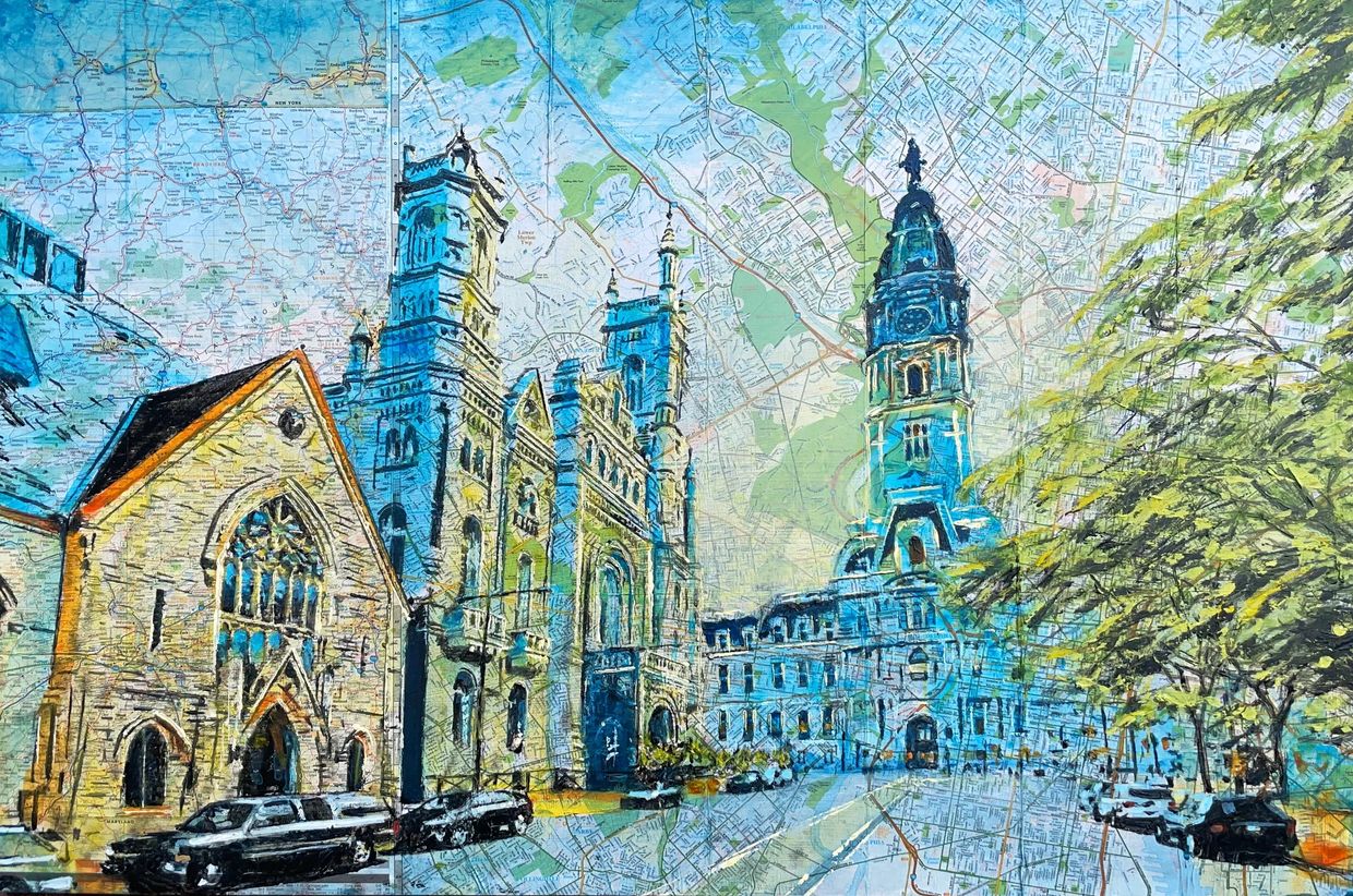 Painted on a map of Philadelphia using badge from thr Rittenhouse Square Fine Art Show as a paintbrush.