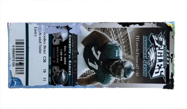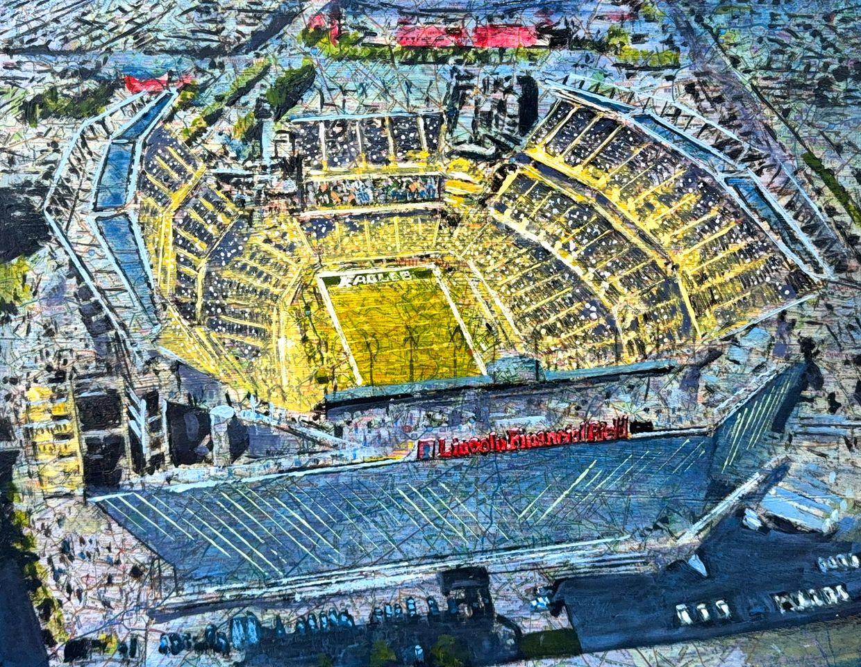 Painted on a map of Philadelphia using a ticket from a game as a paintbrush.