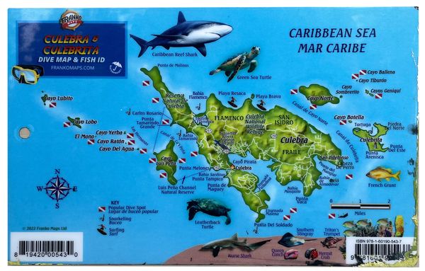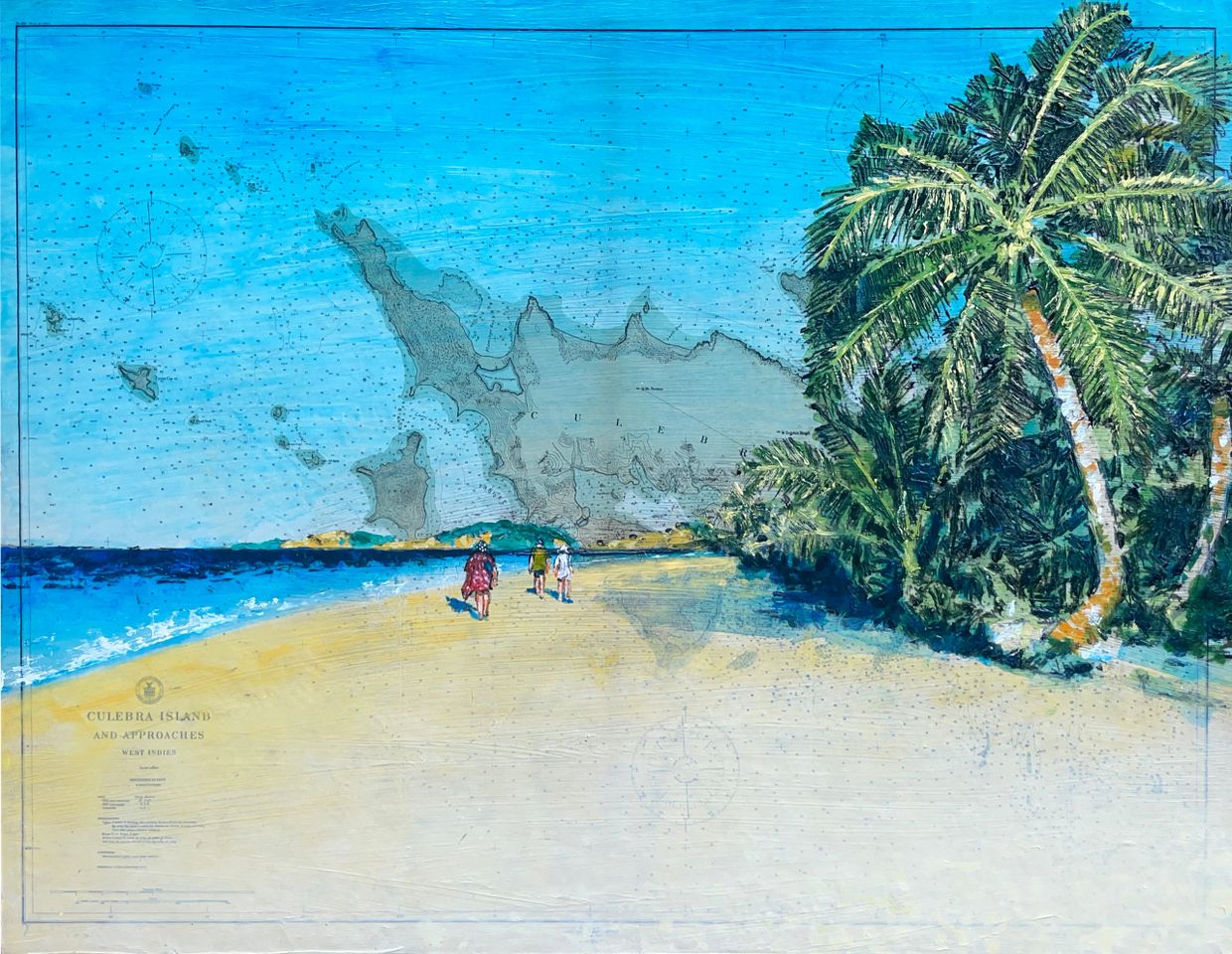 Painted on a map of Culebra, PR, gel bonded to a wood box using a dive card as a paintbrush.