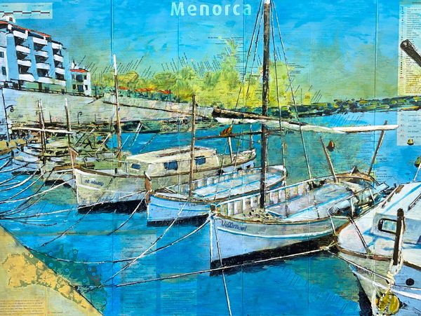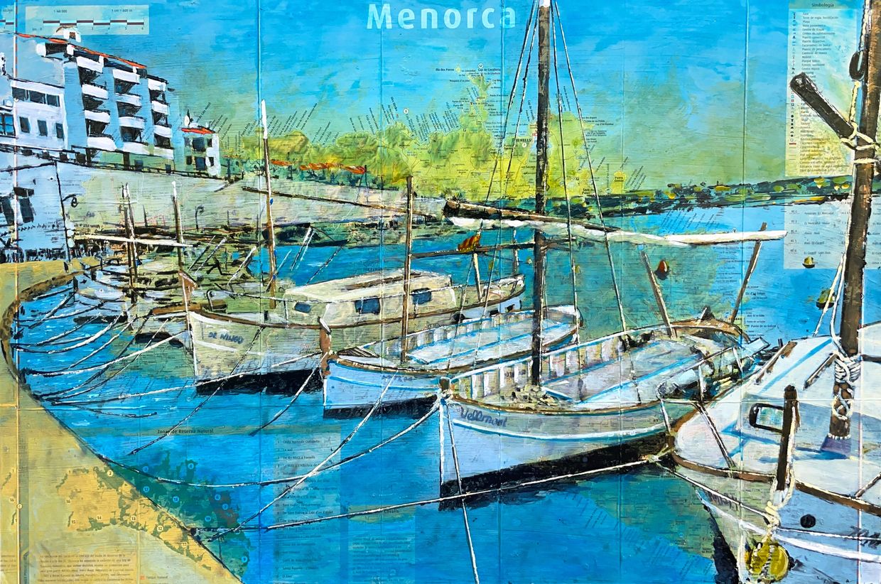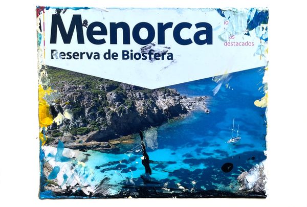 Painted on a map of Menorca using a Menorca guide as a paintbrush.