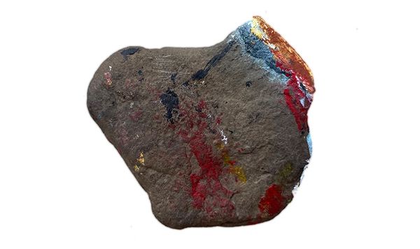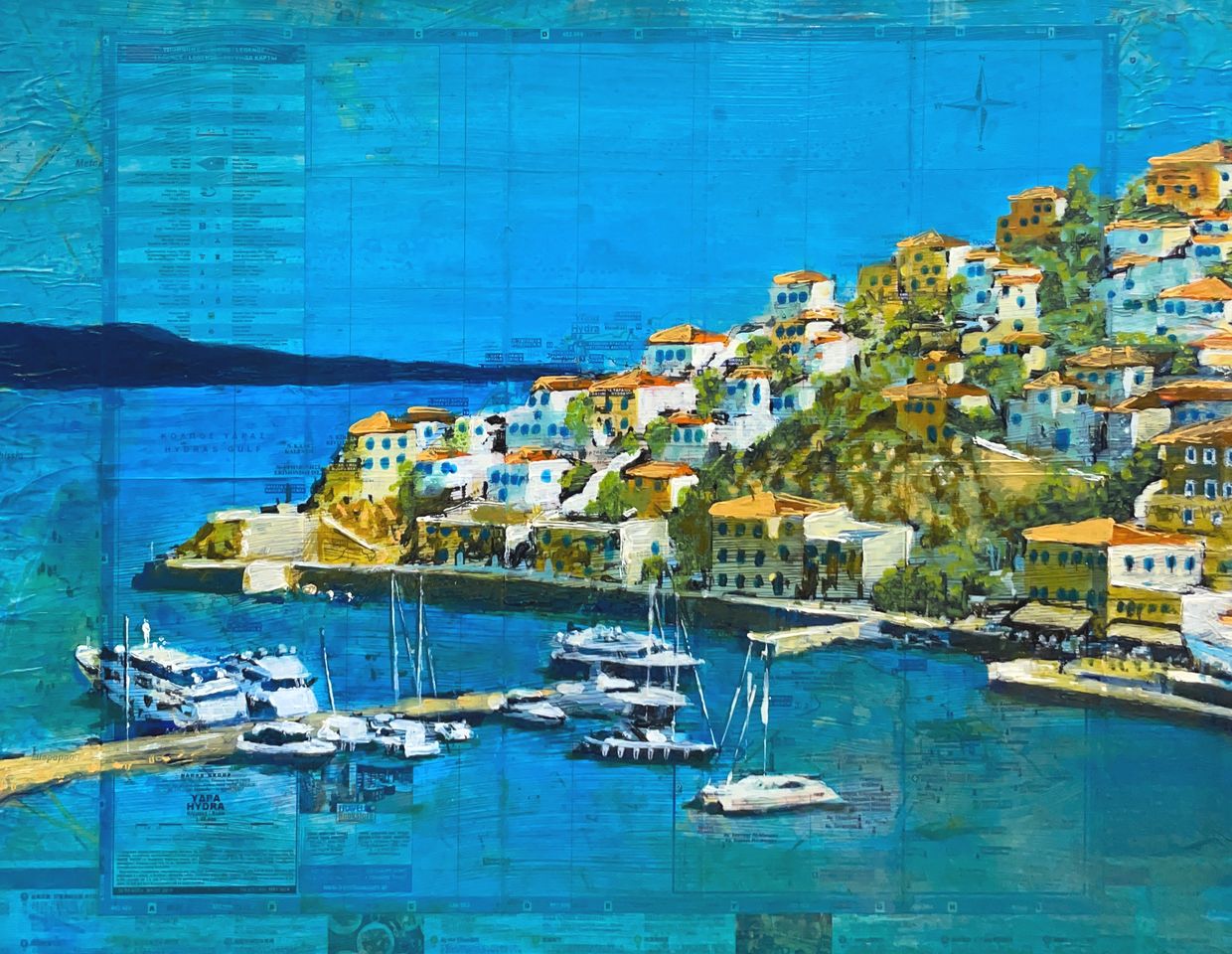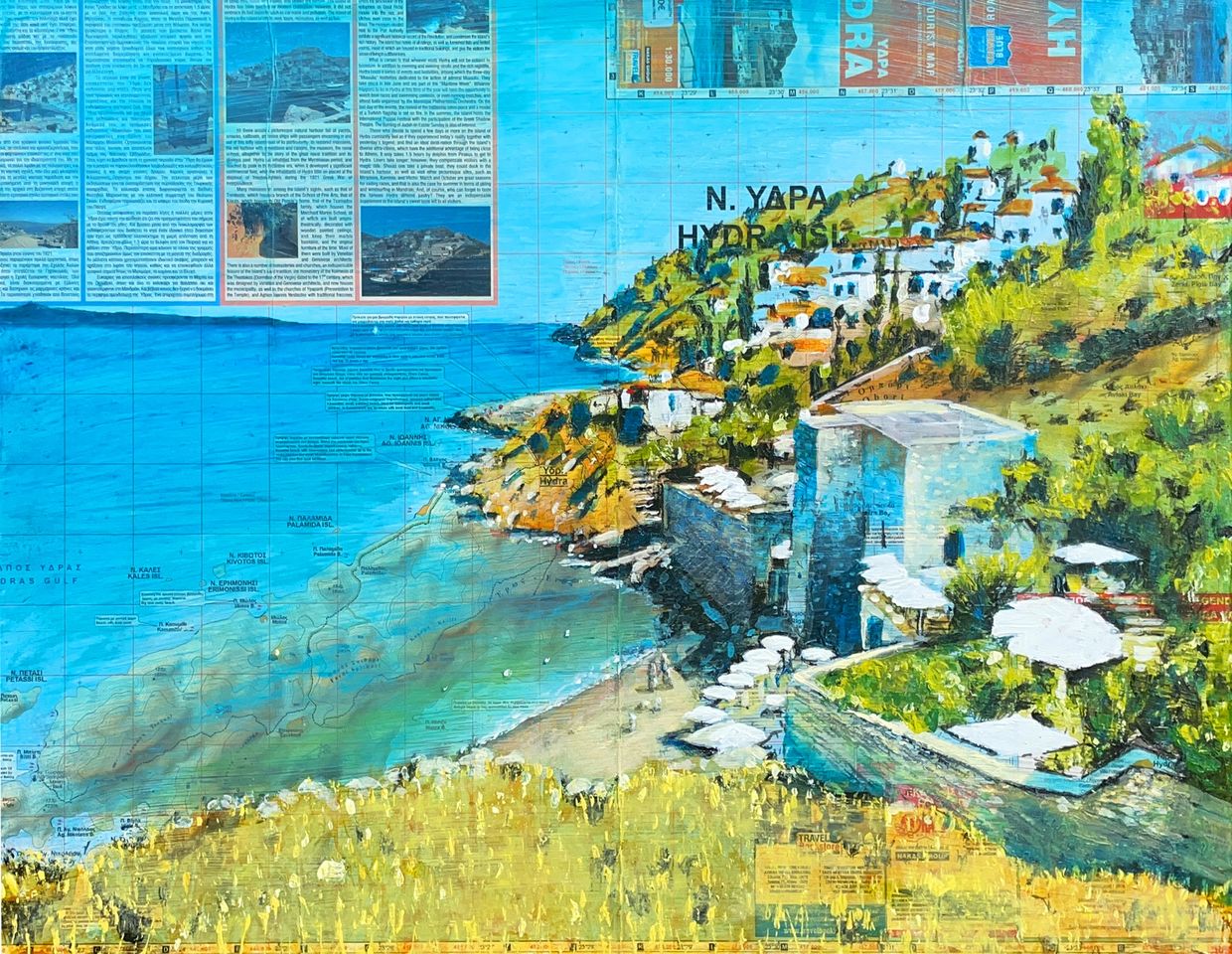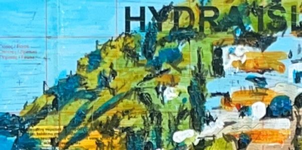 Painted on a map of Hydra using a pebble from Kamini Beach as a paintbrush.