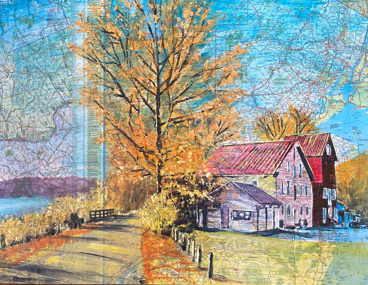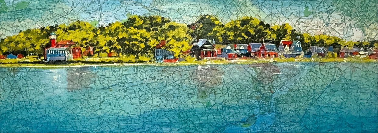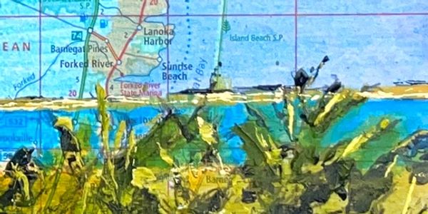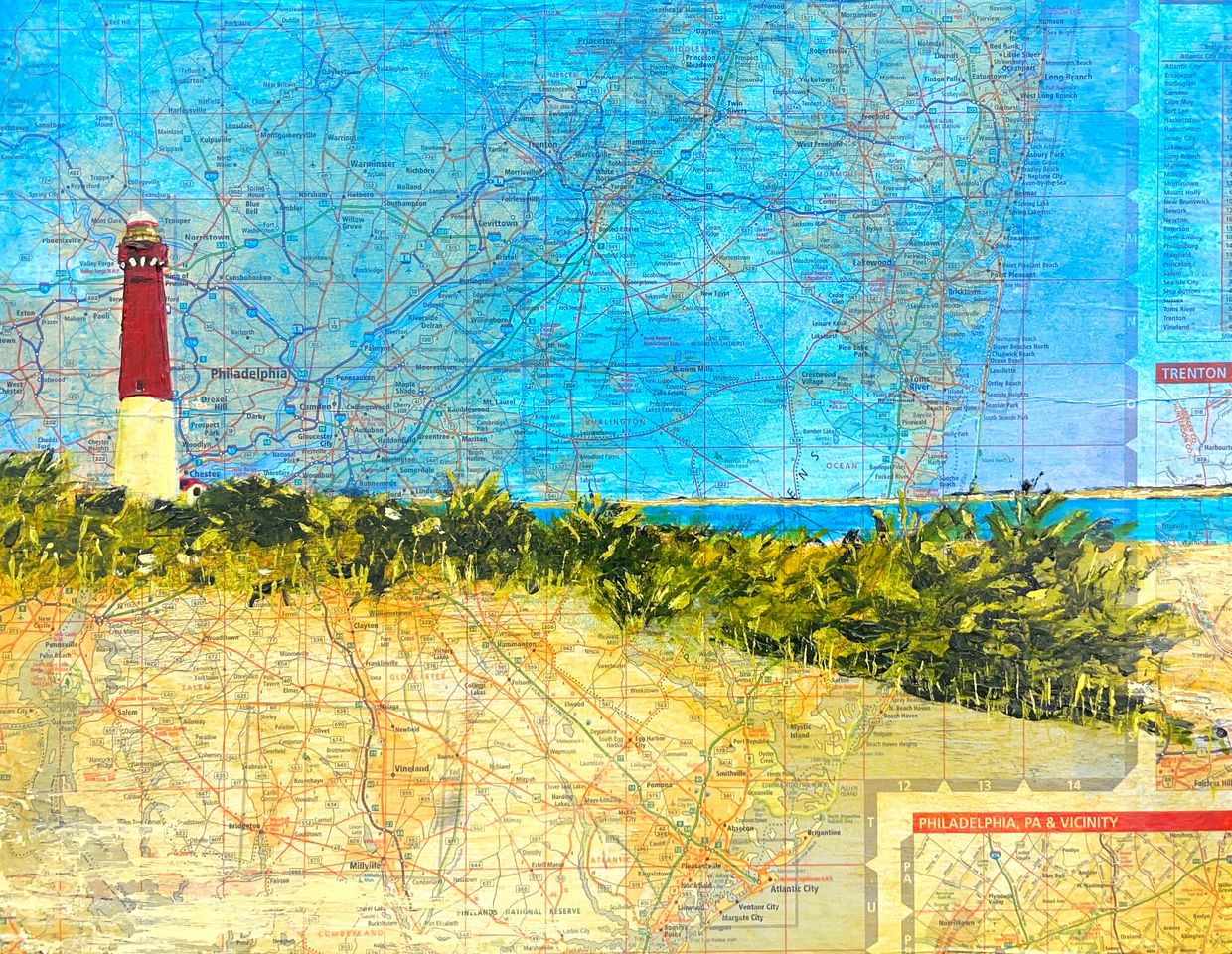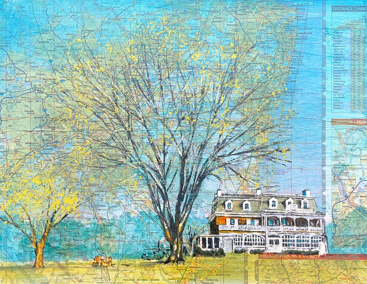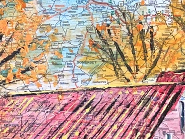 Painted on a map of NJ, gel bonded to a wood box using a card from the Inn as a paintbrush.