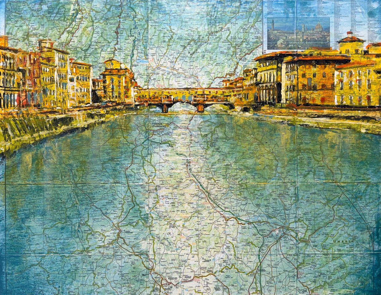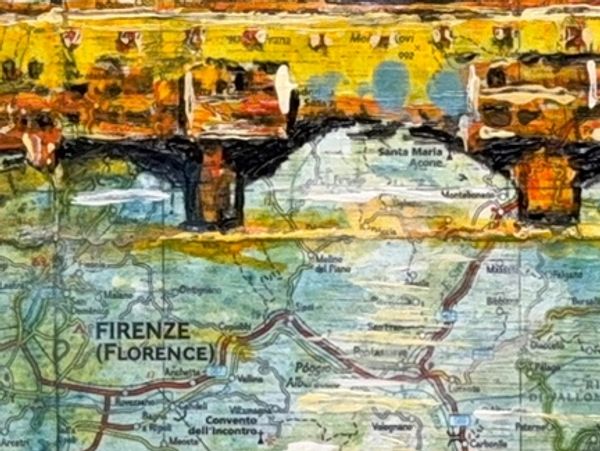 Painted on a map of Tuscany using a tin from a bottle of Chianti as a paintbrush.