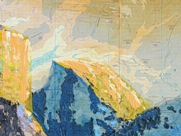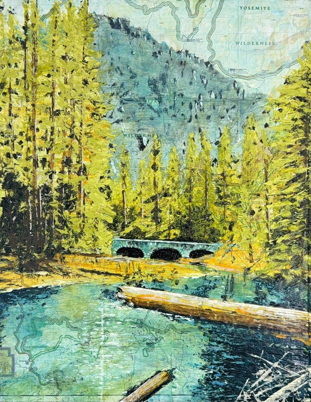 Painted on a map of Yosemite using a stone from the river as a paintbrush.