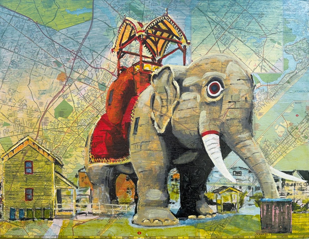 Painted on a map of Margate,Atlantic City using a ticket from Lucy as a paintbrush.
