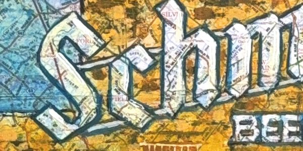 Painted on a map of Philadelphia using a Schmidt's bottle cap as a paintbrush.